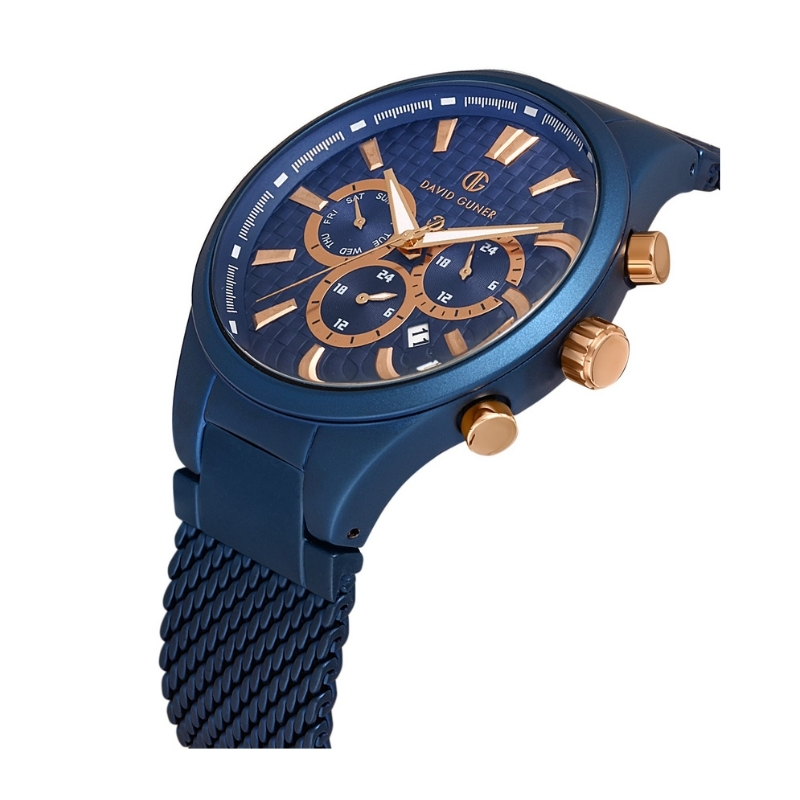 Ruhu canlı, görünümü güçlü bir saat arıyorsan, David Guner Erkek Kol Saati DG‑8343GC‑H3E seninle! Mavi kadranı, fonksiyonel alt kadranları ve sağlam yapısıyla bu modeli hemen bileğine tak — çünkü gerçek tarz, mavi tonlarında saklıdır.
