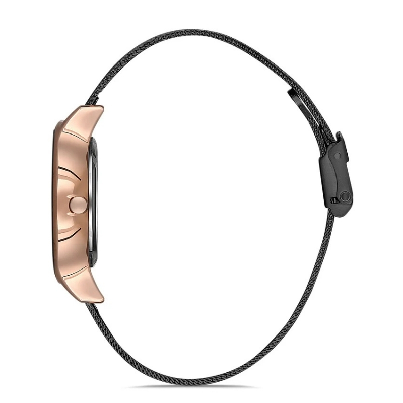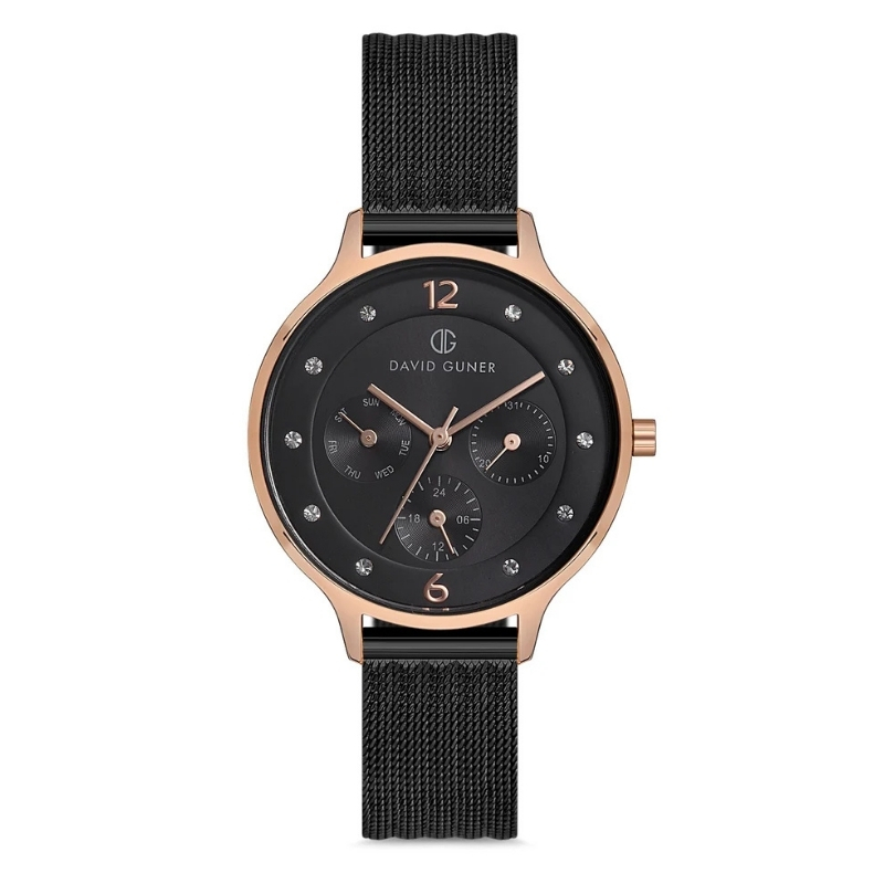 David Guner Kadın Kol Saati DG‑8120LC‑R2 bir aksesuarın ötesinde estetik bir ifade. Gül altın kaplaması ve siyah kadranı, bilekte adeta ışık saçıyor. Kullanıcı dostu çelik örme kordon tasarımıyla uzun kullanımda bile konfor sunar. Ayrıca, 3 ATM suya dayanıklılığı sayesinde günlük su sıçramalarına karşı güven sağlar.