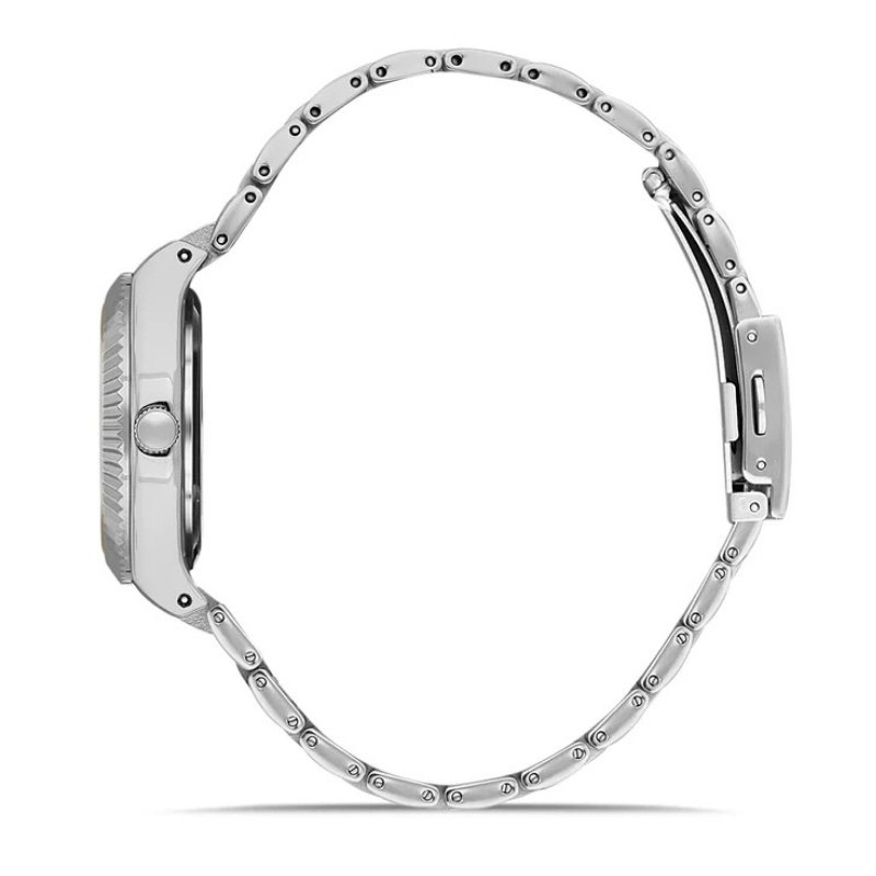 Bu modelde ilk göze çarpan şey, detaylara verilen önem. İndekslerin yerleşimi, kadran tonunun sade dokusu ve kordonun bilezik benzeri kıvrımlı yapısı, David Guner Saat markasının her ayrıntıda estetik düşünen bakış açısını yansıtıyor. Ne gösterişli ne de sıradan… Tam da olması gerektiği kadar dikkat çekici.