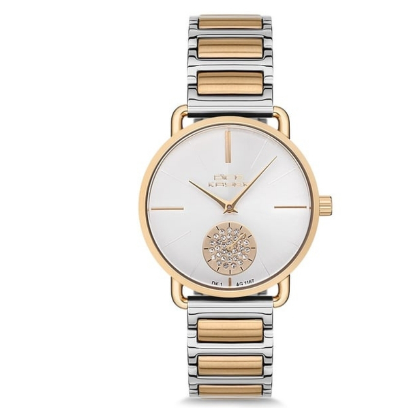 Dice Kayek Kadın Kol Saati DK.1.AG1167.06 , 34-36  mm’lik etrafında dönmeyen taşıyla zarafetin doruklarında geziniyor. Gösterişli olmayan ama varlığıyla hissettiren çelik bileziği, gümüş ve altın tonların uyumuyla dikkat çekiyor. Gri kadran, ince saat işaretleriyle birlikte hem gündüz hem gece kullanıma sakin bir hava katıyor. Mineral cam gündelik çizilmelere karşı dayanım sağlarken bileğinize kusursuz uyum sunuyor.