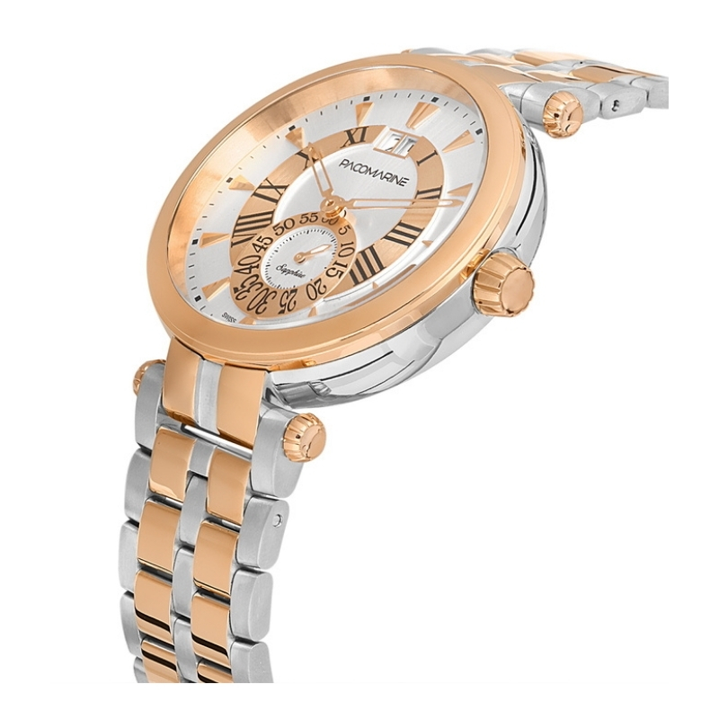 Altın kaplamanın sunduğu ışıltı ve İsviçre kalitesindeki mekanizmayla birleşen bu model, sadece bir saat değil; aynı zamanda bir stil göstergesi. Pacomarine Erkek Kol Saati PM.61227.04 rose gold detaylarıyla dikkat çekerken, her bakışta değerli ve seçkin bir duruş sergiliyor.