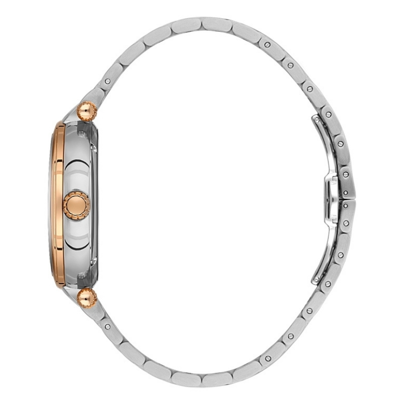 Bu saat, rose gold altın kaplamasıyla klasik ve modern arasında ince bir çizgi oluşturuyor. Gri kadrandaki altın detaylar, minimal ancak çarpıcı bir göz alıcılık sunuyor. Hem iş hayatında hem de sosyal ortamlarda fark yaratan bu model, kombinlerinize prestijli bir son dokunuş katıyor.