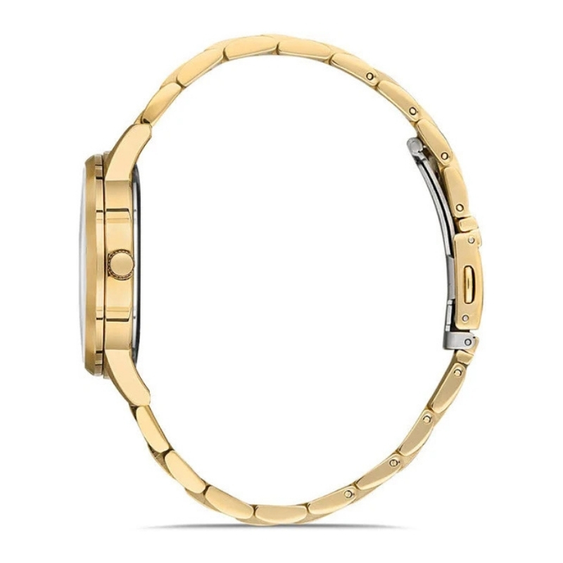 Bu saat, stilinizin sessiz ama etkili bir tamamlayıcısıdır. İş ortamında ciddi ve zarif bir imaj sunarken; hafta sonu sohbetlerinde incelikle parlayan bir dokunuş olur. Altın ton bilezik, beyaz kadranın dinginliğiyle zıtlaşarak gözleri içine çeker — abartıya kaçmadan, sade bir zarafet sunar.